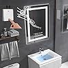 【Anti-Fog Function】Equipped with a defog function, this LED vanity mirror features an innovative anti-fog film that activates with a single press of the defog button. It keeps the mirror clear even in steamy bathrooms and ensures your reflection remains visible.