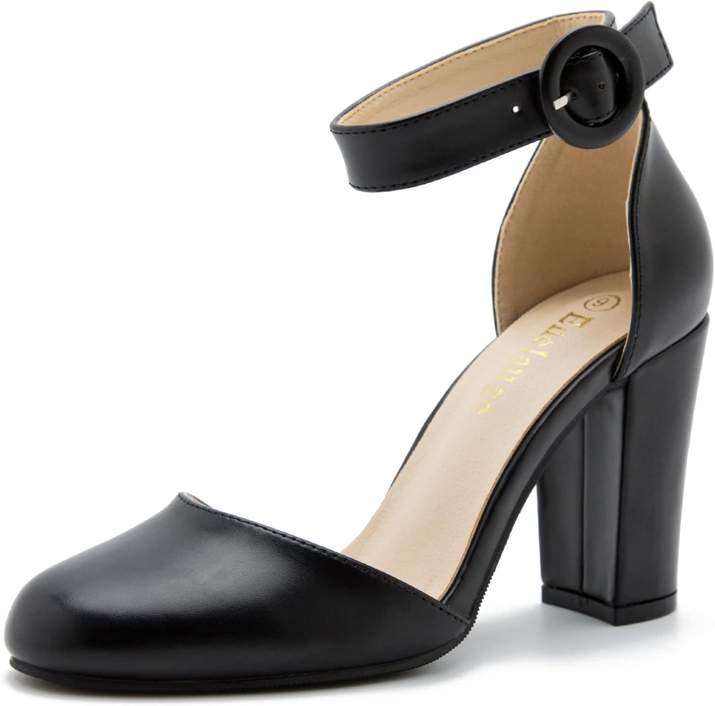 Tacones de Punta Cerrada para Mujer con Correa para Tobillo, Bombas de Tacón Grueso de Bloque Alto D'Orsay, Zapatos de Novia
