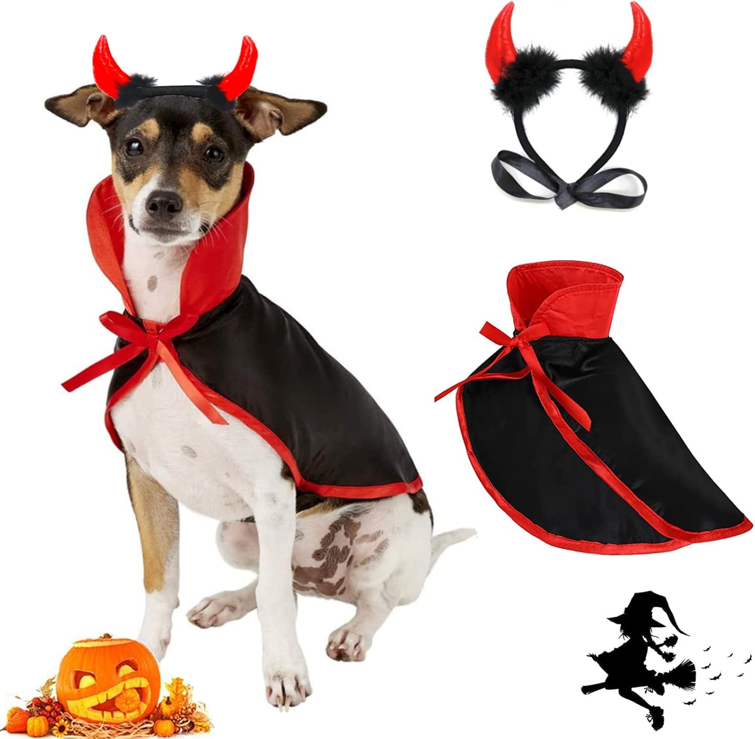 Halloween Large Dog Costume 2PACK Cute Cat Dog Cosplay Devil Hat Headband Adjustable Vampire Cloak Funny Hair Hoop Cape for Medium Large Dogs Holiday Dress Supplies