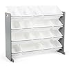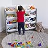 Set includes 12 standard and 4 large removable plastic bins to easily organize toys and games.