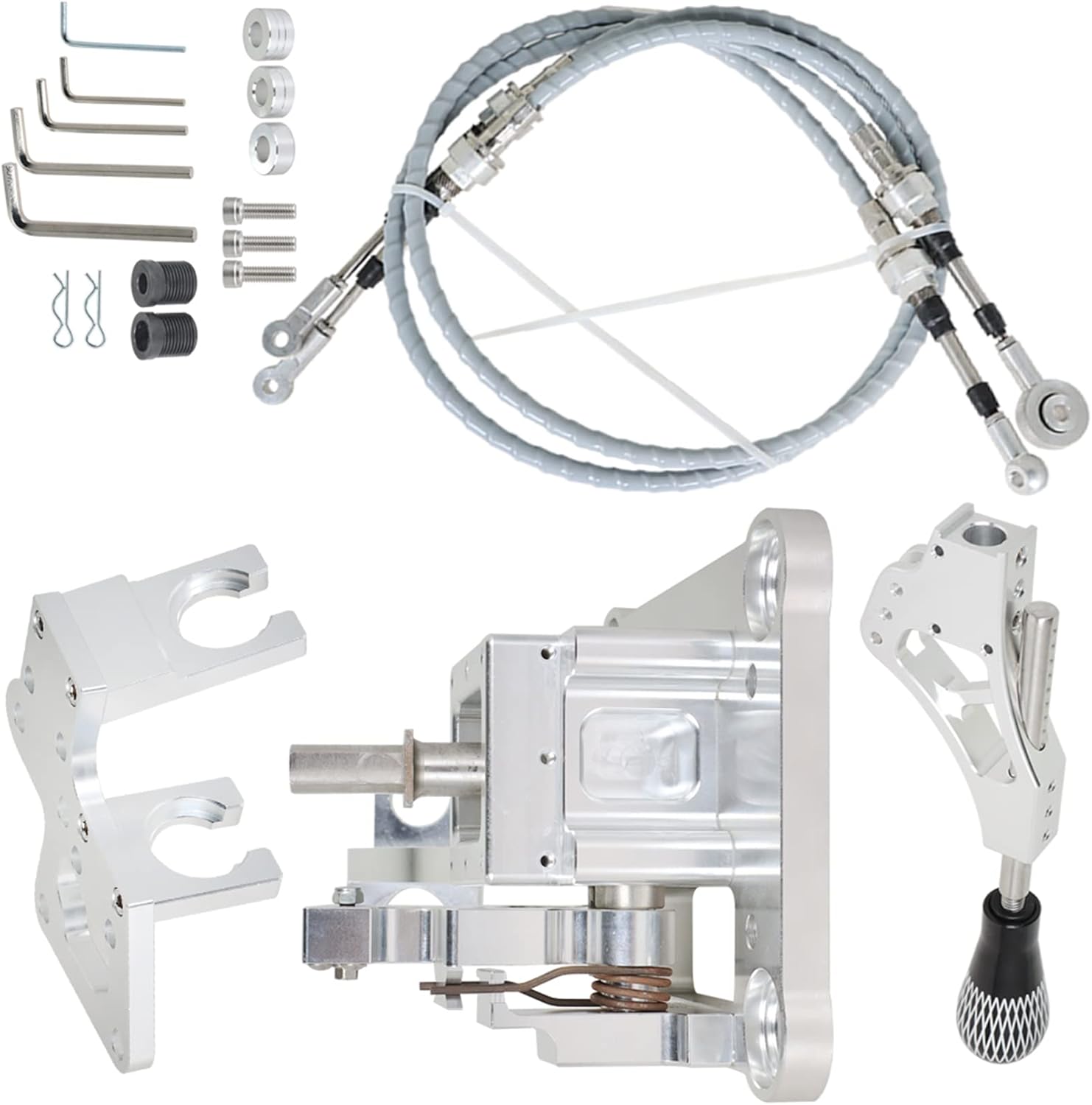 RSX Shifter Cables Assembly Shifter Cables Trans Bracket Replacement for K20 K24 RSX K Swap Eg Ek Ef K Series CivicSpecifications:Type: Shifter Box CablesFitment Type: Performance/CustomSurface Finish: Polished