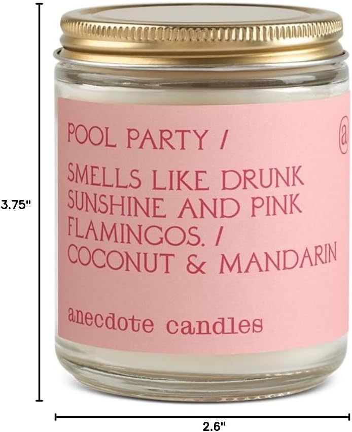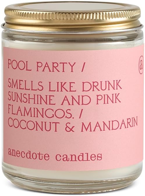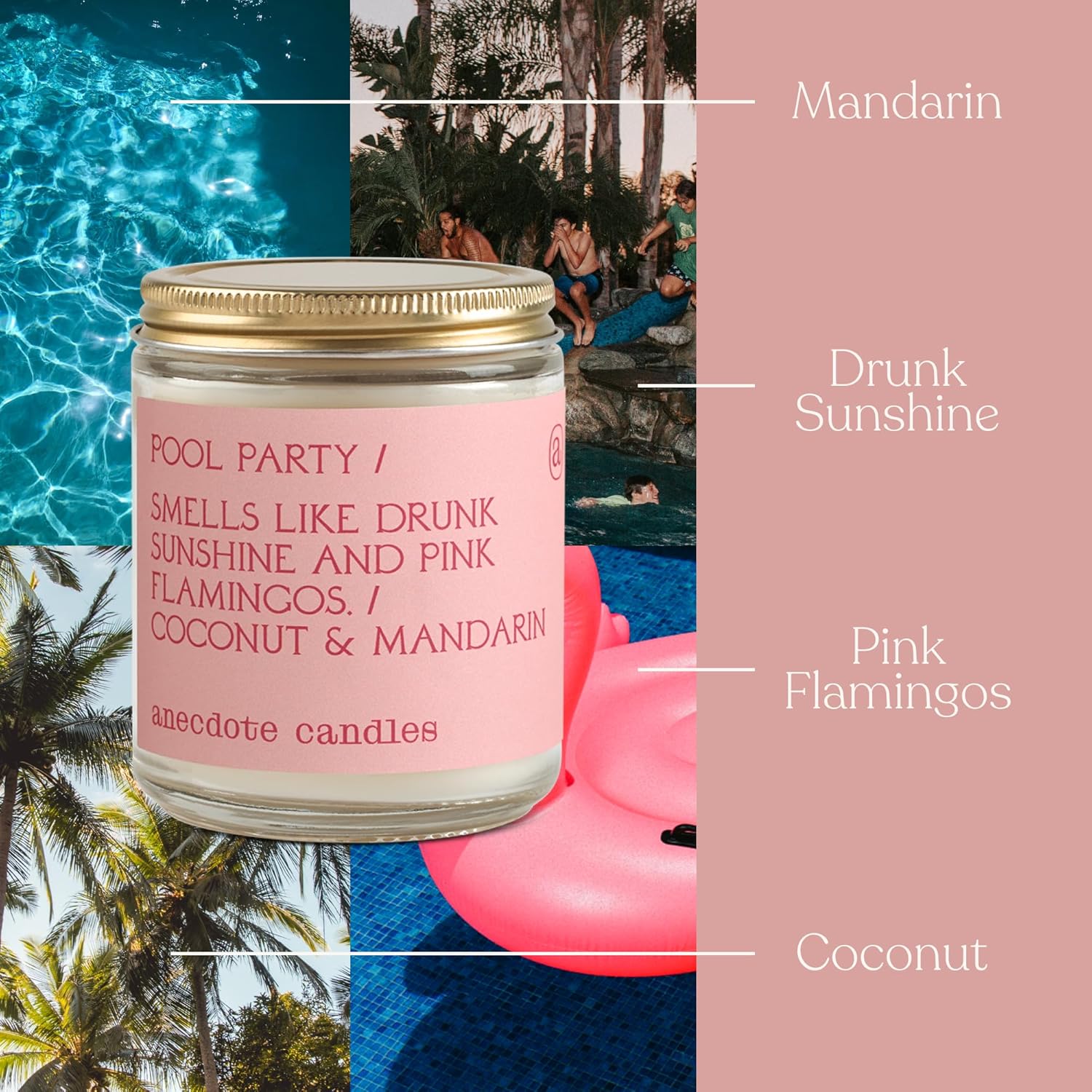 Anecdote Candles 'Pool Party' Coconut Soy Wax Candle | Premium Hand Poured & Long Burning | Coconut & Mandarin Scent | Phthalate-Free | for Home, Office, Gift - 7.8 Oz