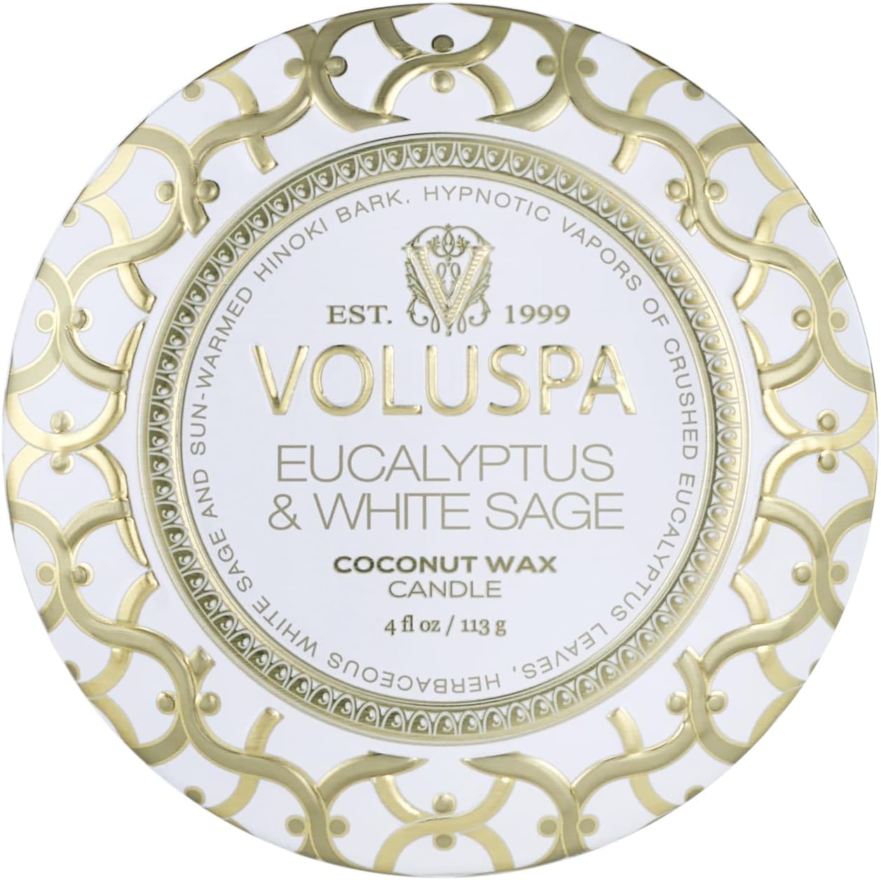 Voluspa Eucalyptus & White Sage | Mini Tin Candle | 4 Oz | 25 Hour Burn Time | Coconut Wax for Clean Burning