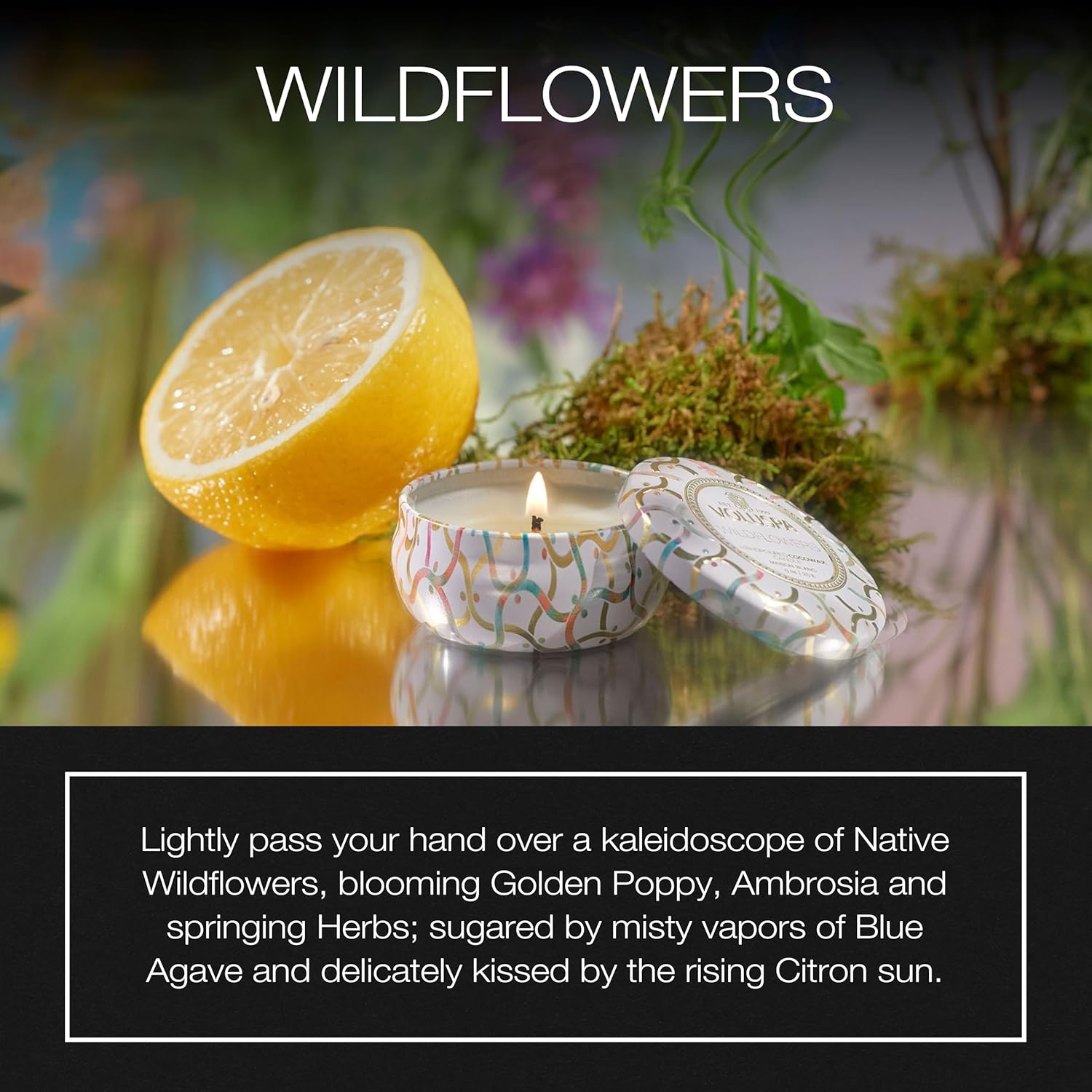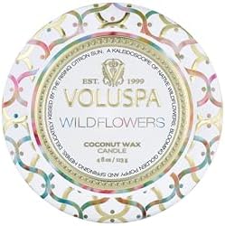 Voluspa Wildflowers, Mini Tin Candle, 4 Ounce, 25 Hour Burn Time, Coconut Wax for Clean Burning, Handcrafted in The USA