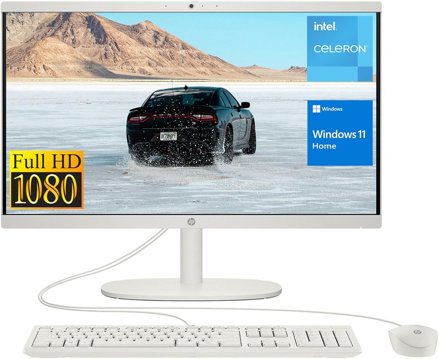 HP 2022 All-in-One Desktop, 21.5" FHD Display, Intel Celeron J4025 Processor, 8GB RAM, 256GB PCIe SSD, Webcam, WiFi, HDMI, RJ-45, Wired Keyboard&Mouse, Windows 11 Home, White