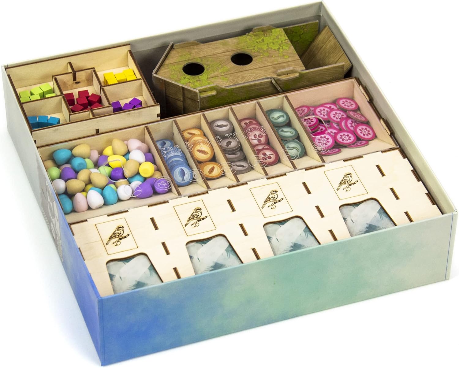 El organizador de alas es la solución perfecta para almacenar convenientemente los componentes de Wingspan y sus expansiones en la caja original.