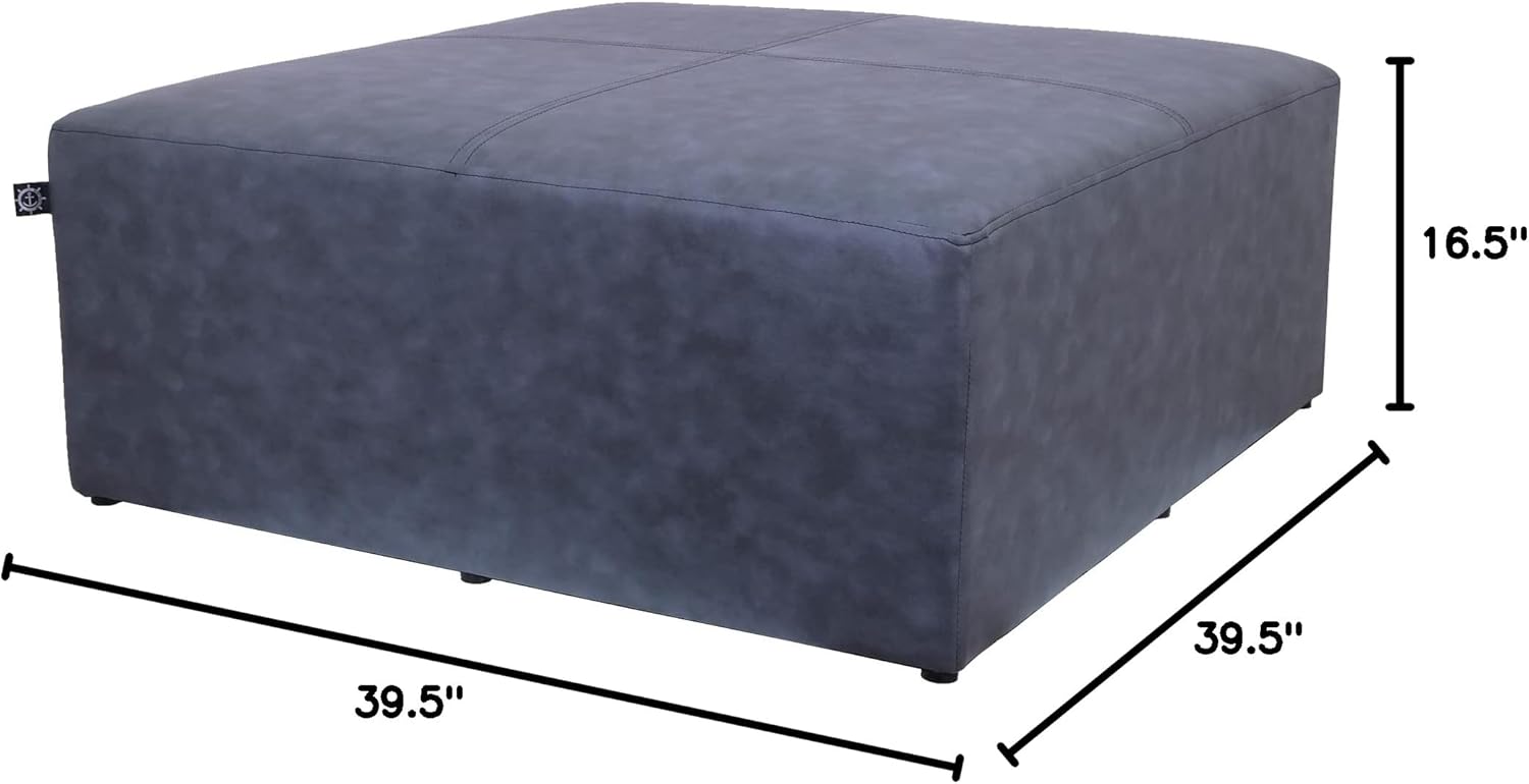 Need a place for serving drinks and snacks in the living room? What about extra seating for guests? The Crew Furniture Brigantine Cocktail Ottoman is perfect for the occasion. The top is soft enough for seating, yet firm enough to support a serving tray of beverages. But you don't have to have a party to enjoy this piece. Designed for everyday use, the durable frame is constructed of engineered wood and cushioned with high density polyurethane foam. The contemporary design is beautifully upholstered with imitation leather and decorated with double needle topstitch sewing to harmonize with modern living spaces. Weight limit 400 lbs.