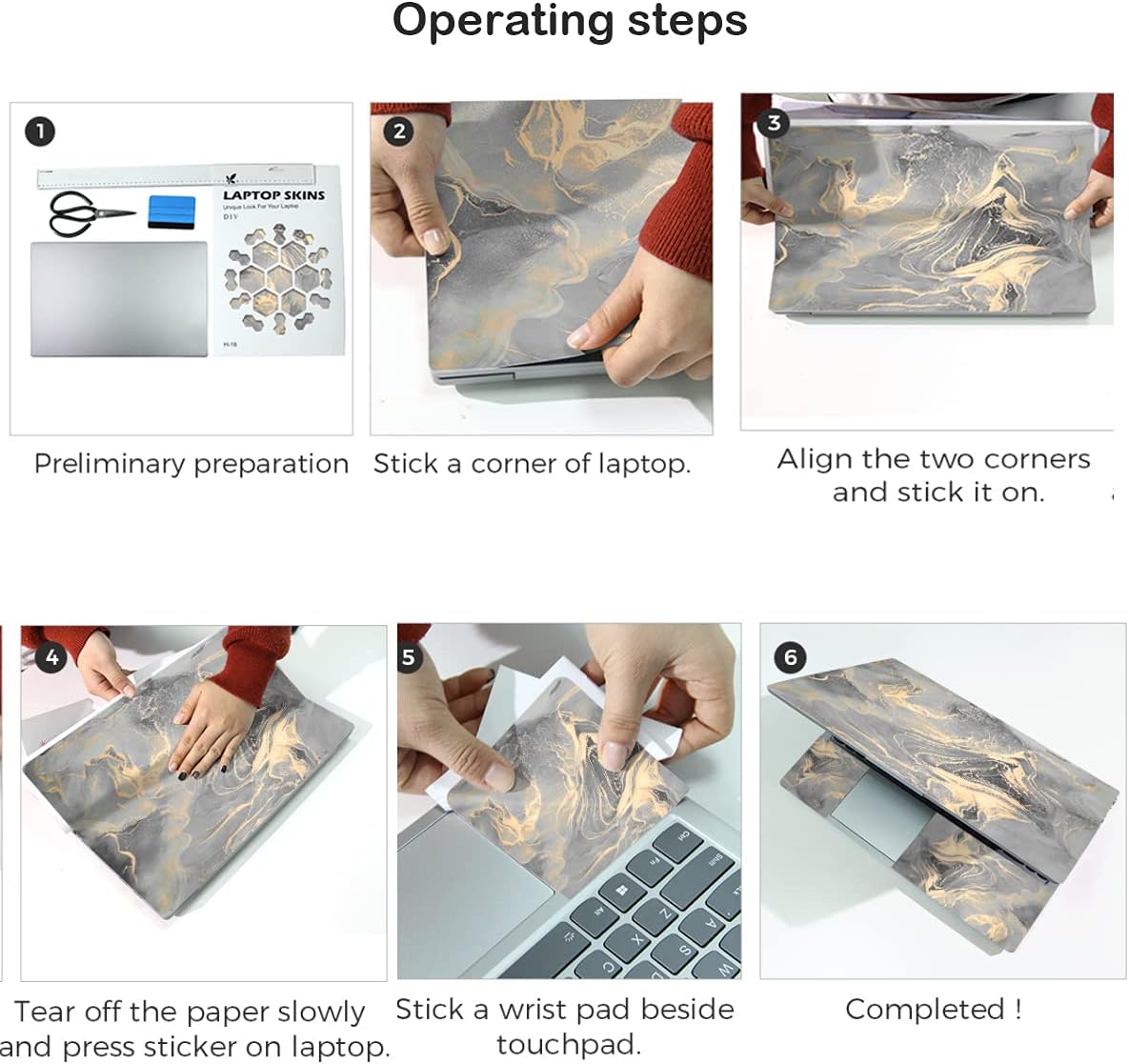 Laptop Skin Sticker,13.3 14 15 15.4 15.6 inch Universal Vinyl Laptop Skins Stickers Covers, with Free 2 Wrist Pads Decal Highly durable, dustproof, waterproof, non-fading reusable, gooey free adhesive and prevents abrasions and scratches. Applied and removed easily without any tesidue. Reusable many times, so long as the backing is preserved. Easily trimmed down to fit smaller laptops under 15" with instructions Three films are included,one for the back side of the LCD screen and two for the sides of the touch pad Compatible with : Fits 13" 14" 15" 15.4" & 15.6" wide screen laptops Material: PVC_Removable Layer+Paper layer Dimension : The big one is 14.96" (38cm) x 10.65" (27cm) wrist pads one is (5.4" x 3.5" and 4.6" x 3.5") *NOTE* The 15.6 inch laptop sticker is a big universal one,some trimming might be required due to different laptop size, corner and edge Package Includes: 1 x for back side of the LCD screen 2 x for sides of the touch pad
