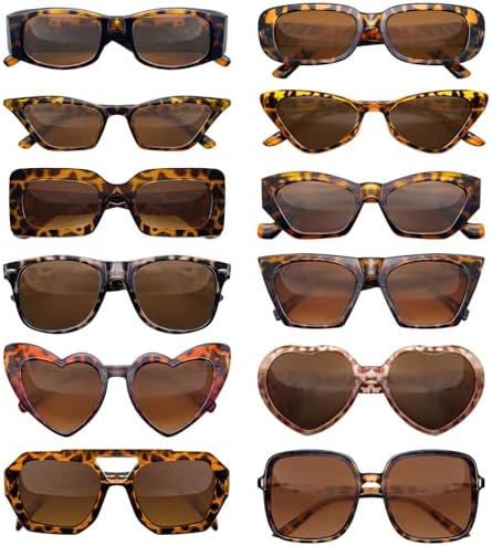 UNIQUE COMBINATION – These package include 12 different leopard series sunglasses, cateyes, heart, square, round, oval, sufficient styles and quantities to match your daily needs.