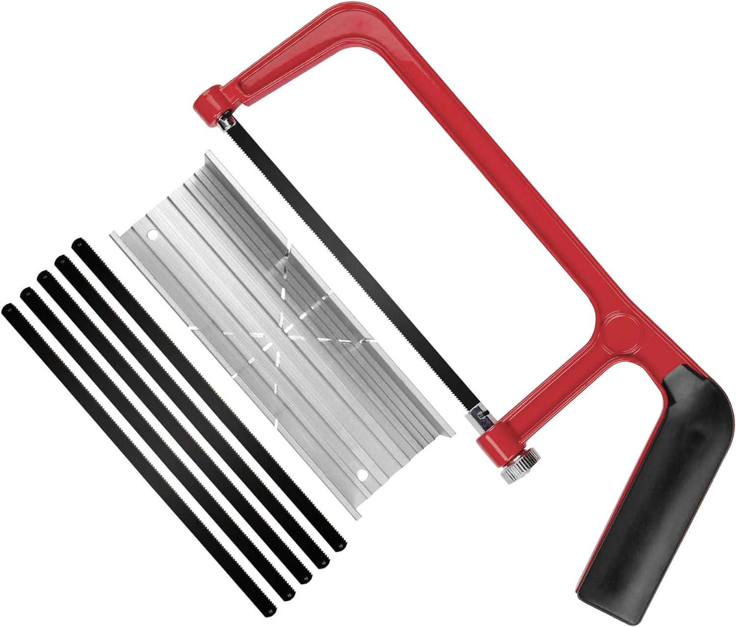 【All-in-One Compact Hacksaw Kit】Includes a durable light alloy hacksaw frame, aluminum alloy miter box, and 6 high-quality bi-metal blade. Ideal for precision jobs in woodworking, crafts, or repair