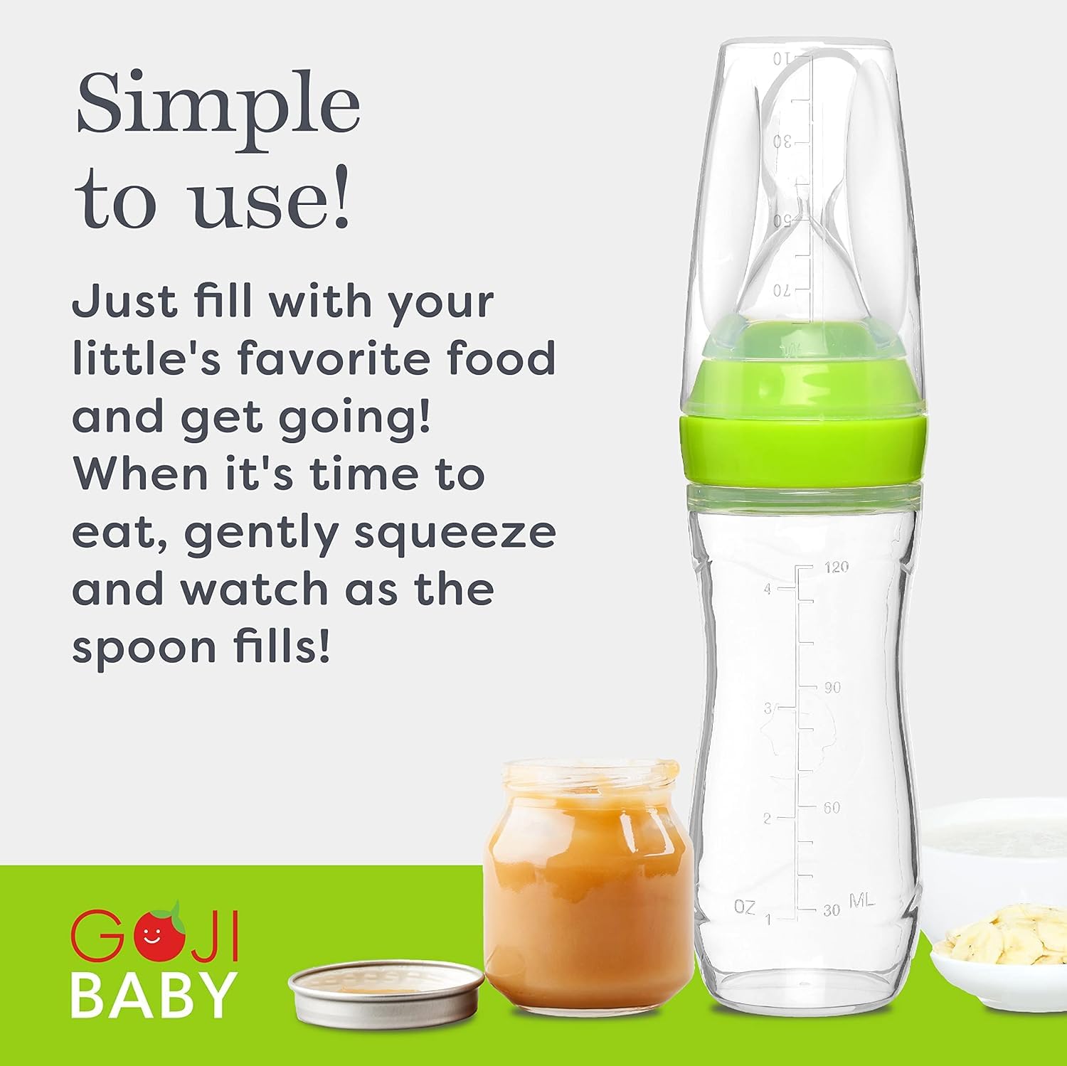 Precision Feeding Made Easy: The Goji Baby Silicone Baby Food Dispensing Spoon & Squeeze Feeder ensures a precise and mess-free feeding experience. Easily control the flow of baby food, perfect for feeding spoons and baby food squeeze spoon feeders