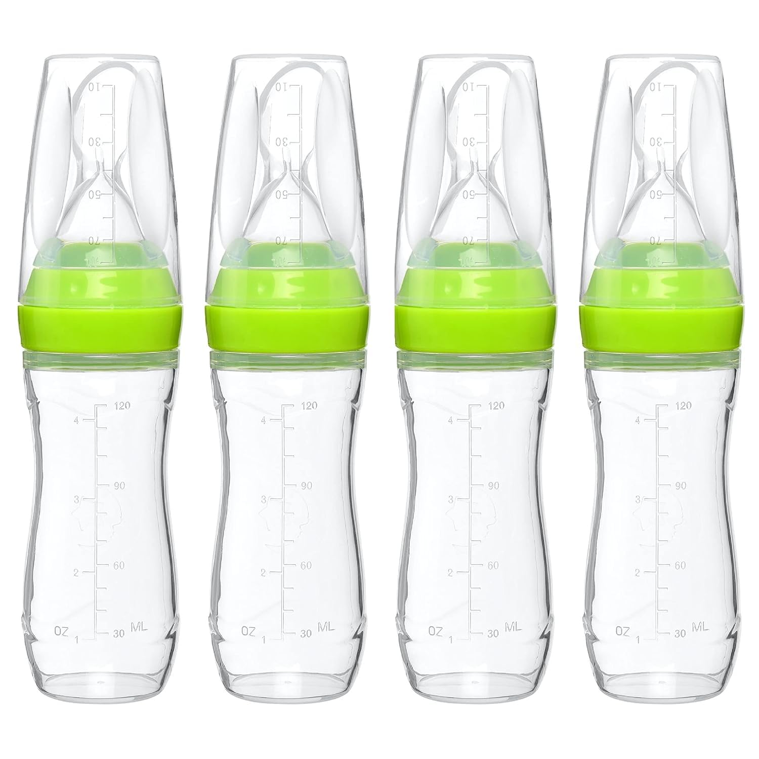 Silicone Baby Food Dispenser Spoon - Mess-Free Flow with Baby Food Dispenser - Precise Serving with Squeeze Feeding Spoon - Soft Silicone Feeder for Teething Infants - Green, Pack of 4
