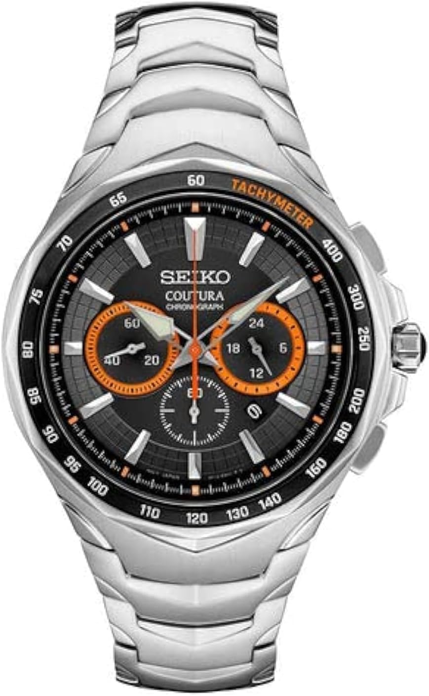 Reloj cuarzo cronógrafo de acero inoxidable con correa de dos tonos y esfera negra para hombre SEIKO