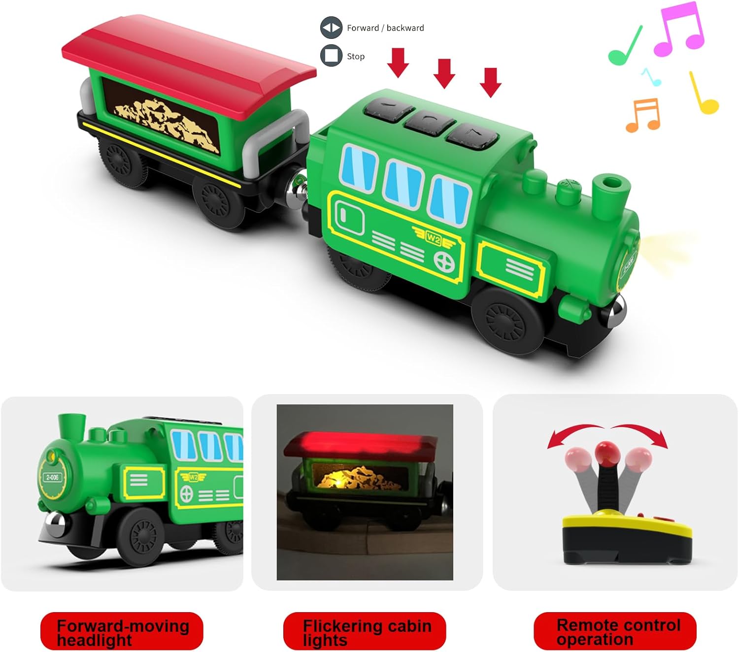 Battery Operated Locomotive Train Set for Wooden Train Tracks,Powerful Engine Train Vehicles Train Electric Remote Control Cars with Light&Sound Train Toy Gift for Kids Toddler