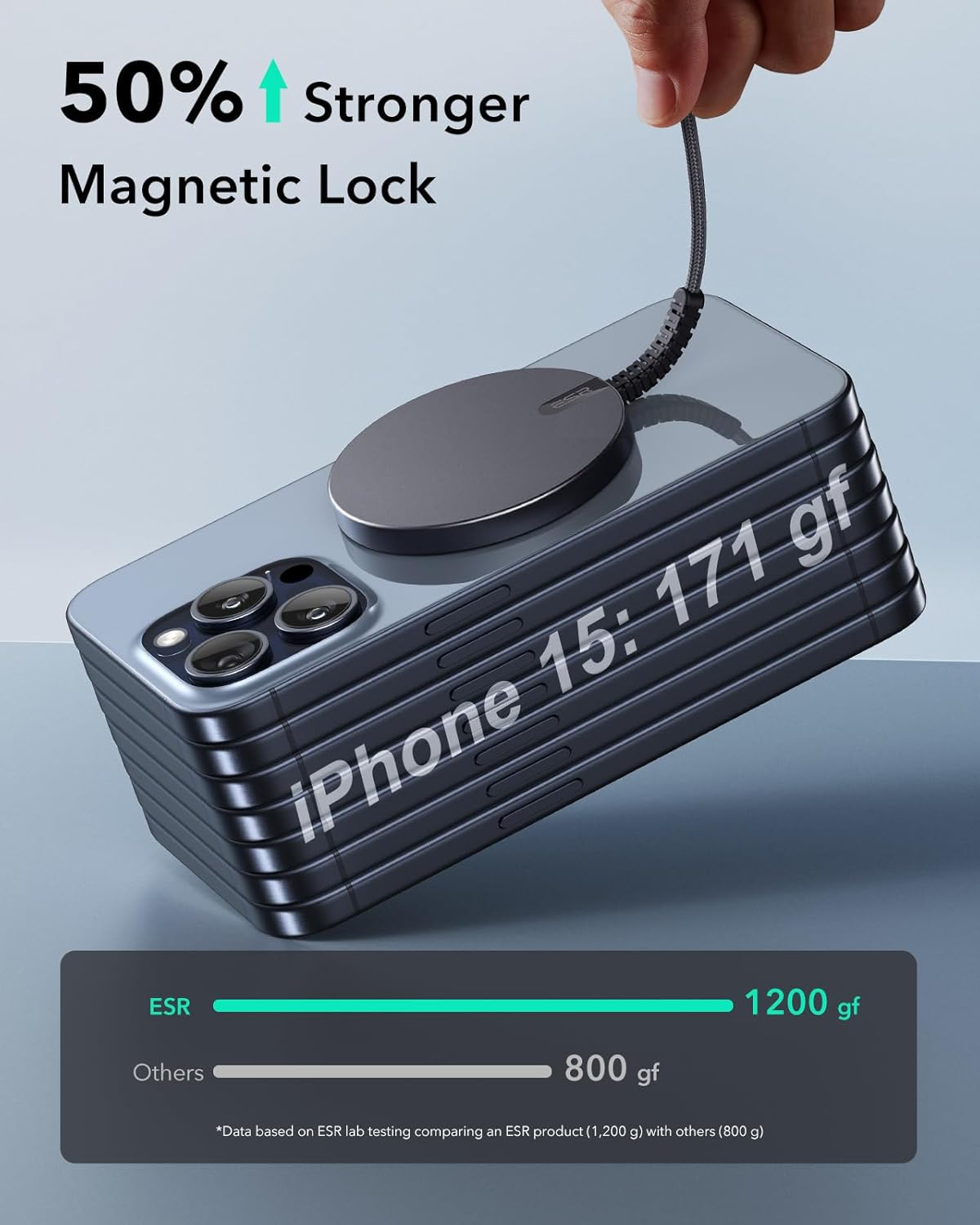 Strong Magnetic Lock: powerful magnets with a holding strength of 1,200 g keep charger securely attached to your phone
