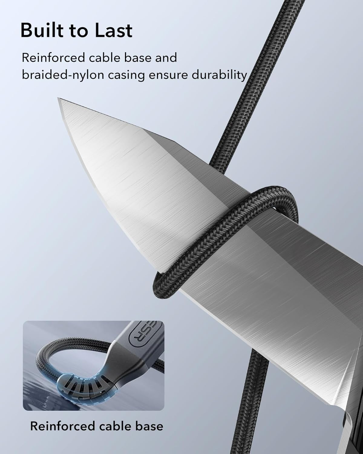 Built to Last: ultra-durable cable with reinforced base and braided nylon outer casing is tested to stay looking and working like new after more than 6,000 bends