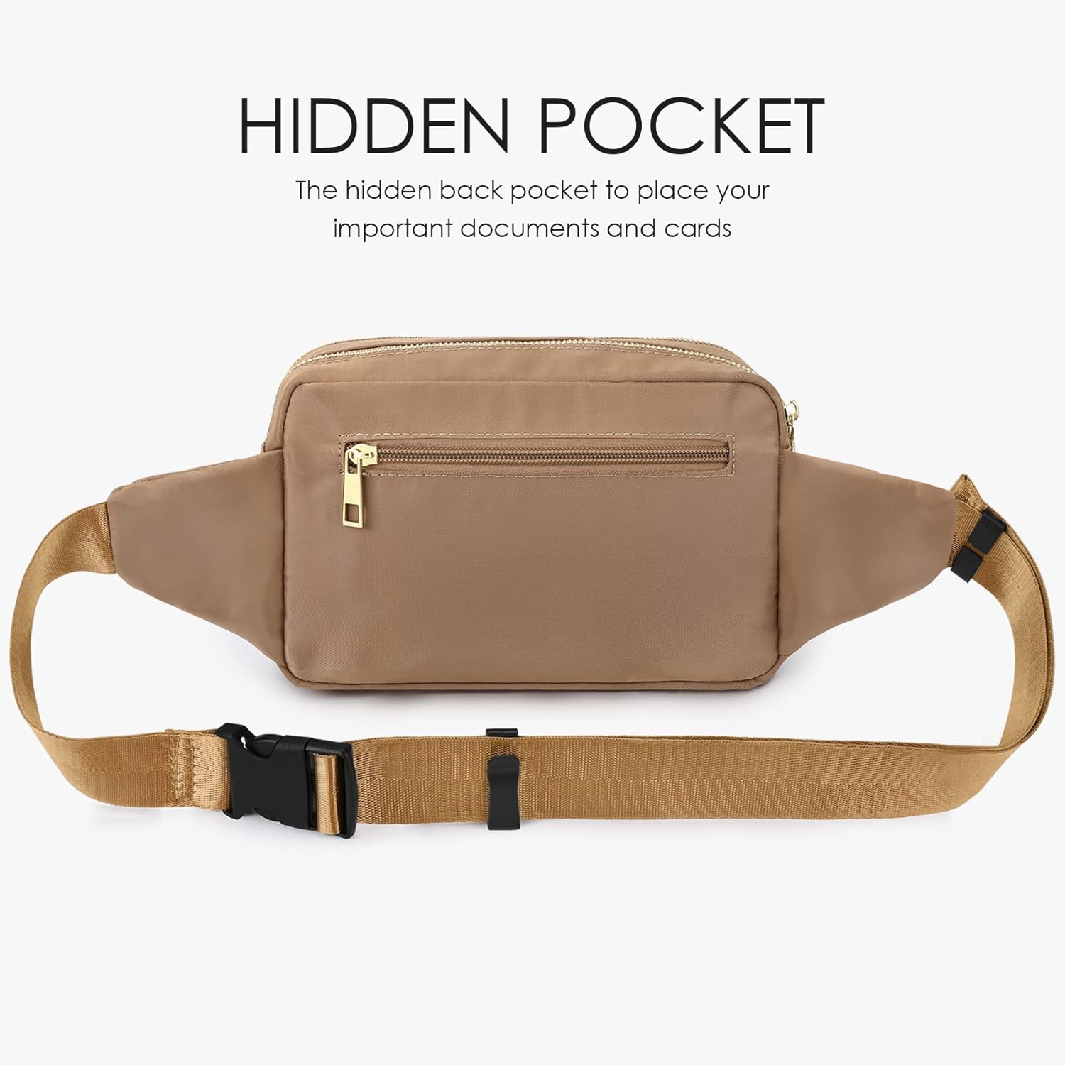 ZORFIN Fanny Packs for Women Men, Belt Bag with 5 Zipper Pockets, Fashion Waist Pack Crossbody Bag with Adjustable Belt for Travel/Shopping/Hiking/Running/Cycling(Brown)