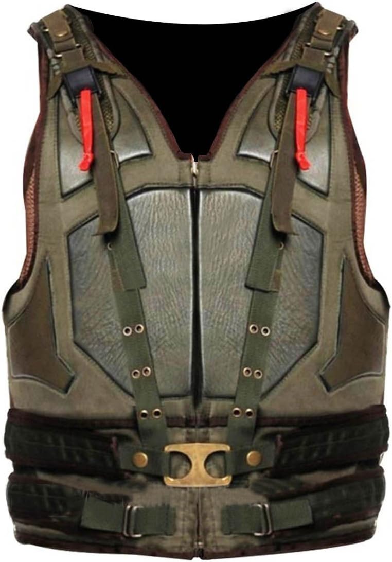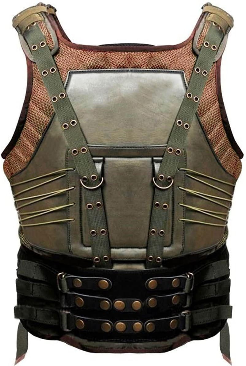 Men's Bane Vest Jacket Halloween Costume Cosplay - Tom Hardy Knight Rises Military Vest Faux Leather, Green, 5X-Large