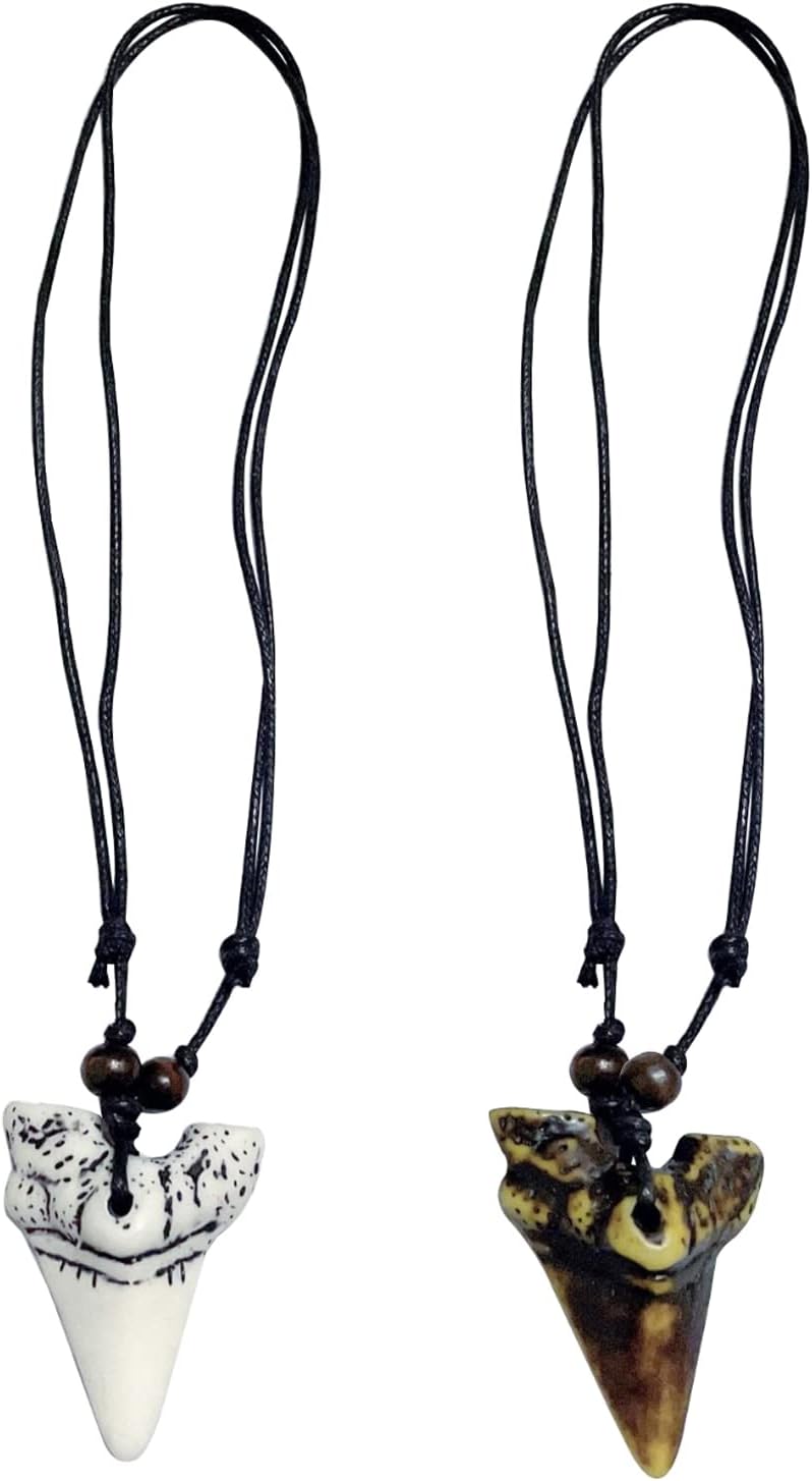 2 Pcs Shark Tooth Necklace for Men Fossil Shark Teeth Cool Sharktooth Beach Necklaces for Men Beach Surfer