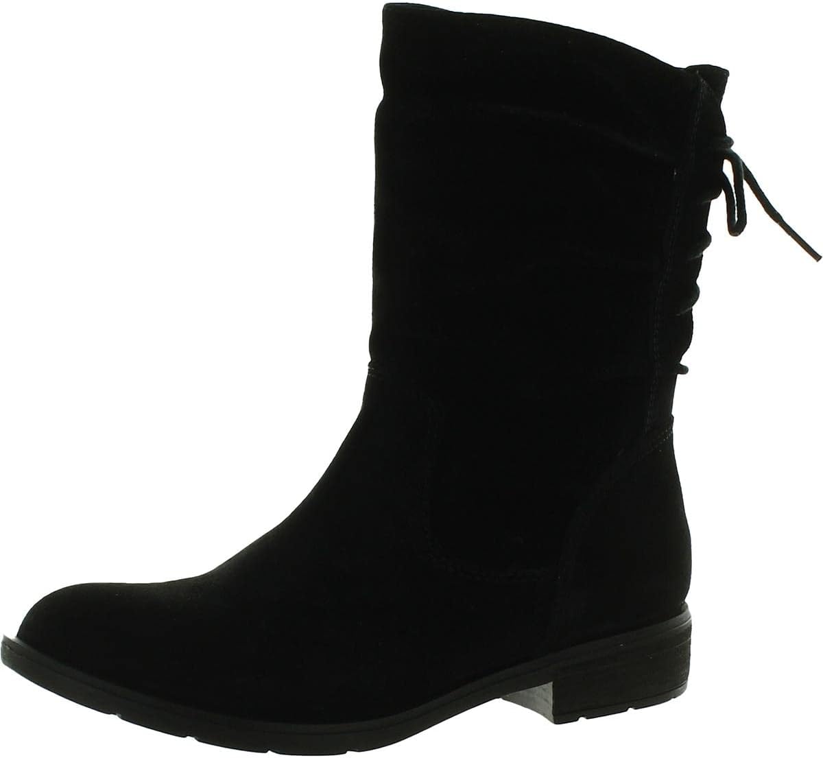 This customizable boot offers an effortlessly chic look | Waterproof suede upper with seam-sealed construction | Side zipper for easy on/off | Approx. 1 1/2 inch stacked heel | Slouchy shaft detail | Adjustable back lace up allows you to customize your shaft circumference from 13 1/2 to 16 1/2 inches | Cushioned ball, heel, and arch for extra support