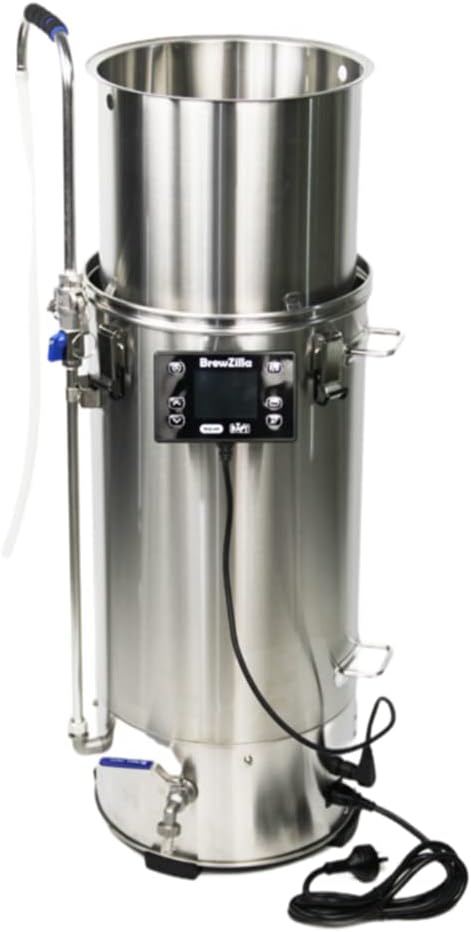 El Brewzilla está diseñado para ser un sistema de elaboración casera compacto de un solo recipiente para todo tipo de granos con una potencia de 110 V, por lo que se puede conectar en cualquier lugar. Es un sistema completo listo para usar con una función de temporización de retardo y una función de maceración gradual. Construido para hacer lotes de hasta 30 litros con una capacidad de 35 litros. Es la solución ideal para aquellos que quieren dar el primer paso en la elaboración de cereales y no quieren arruinarse.