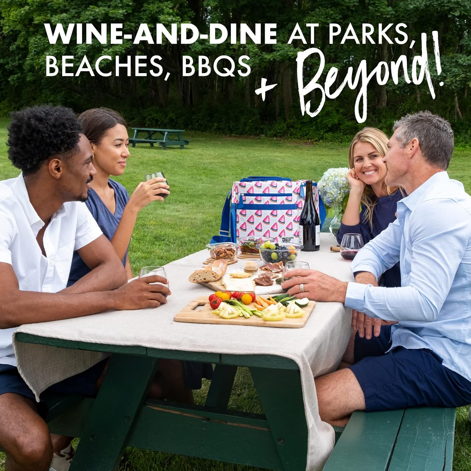 STAYS COOL - 3 layer thermal insulation ensures prolonged freshness, complemented by a leak-proof interior for easy cleaning. Our slotted compartment holds wine bottles upright when traveling.