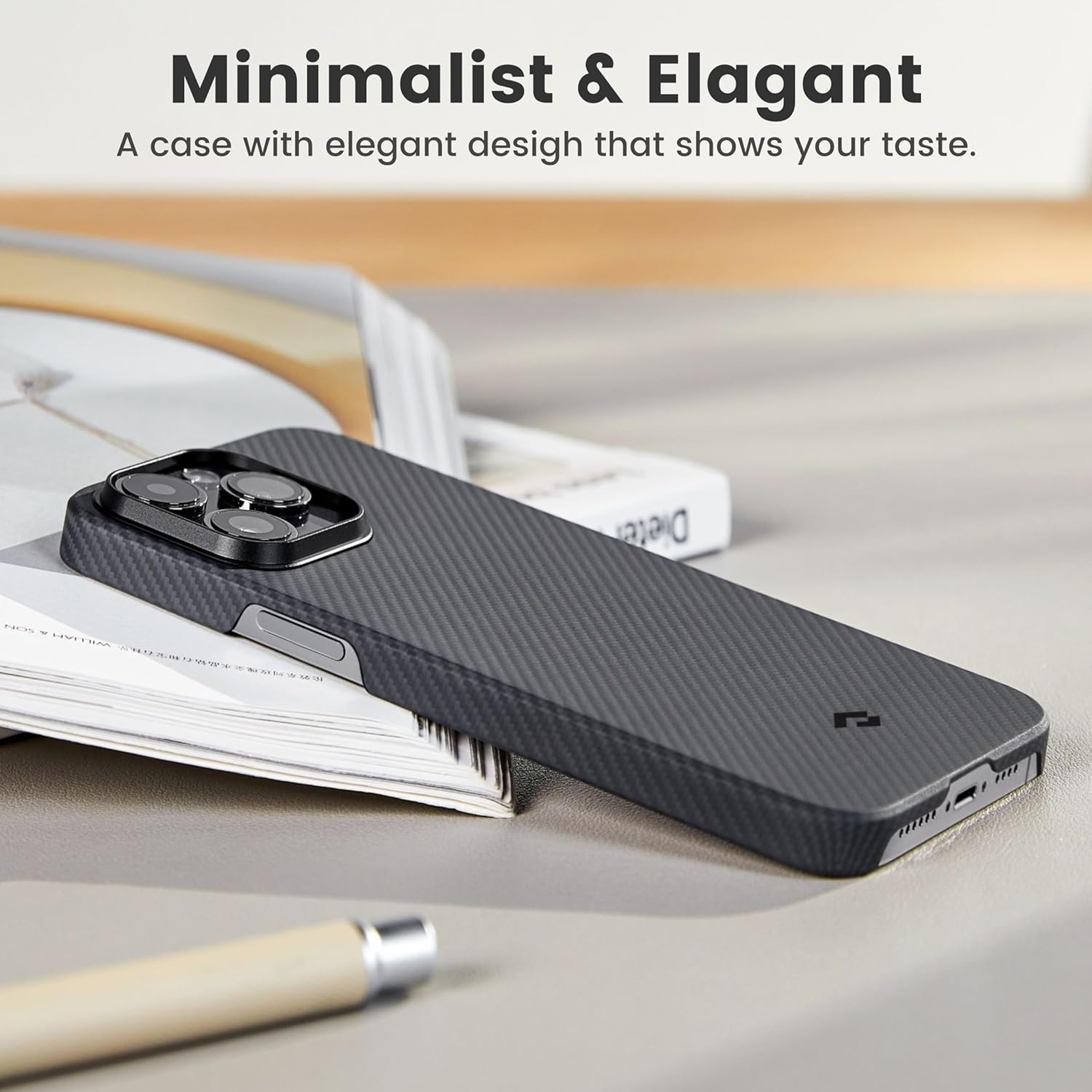 Funda PITAKA para iPhone 14 Pro compatible con MagSafe, funda delgada y ligera para iPhone 14 Pro de 6.1 pulgadas con sensación táctil sin funda, fabricada en fibra de aramida 600D [funda MagEZ 3, negro/gris (sarga)]