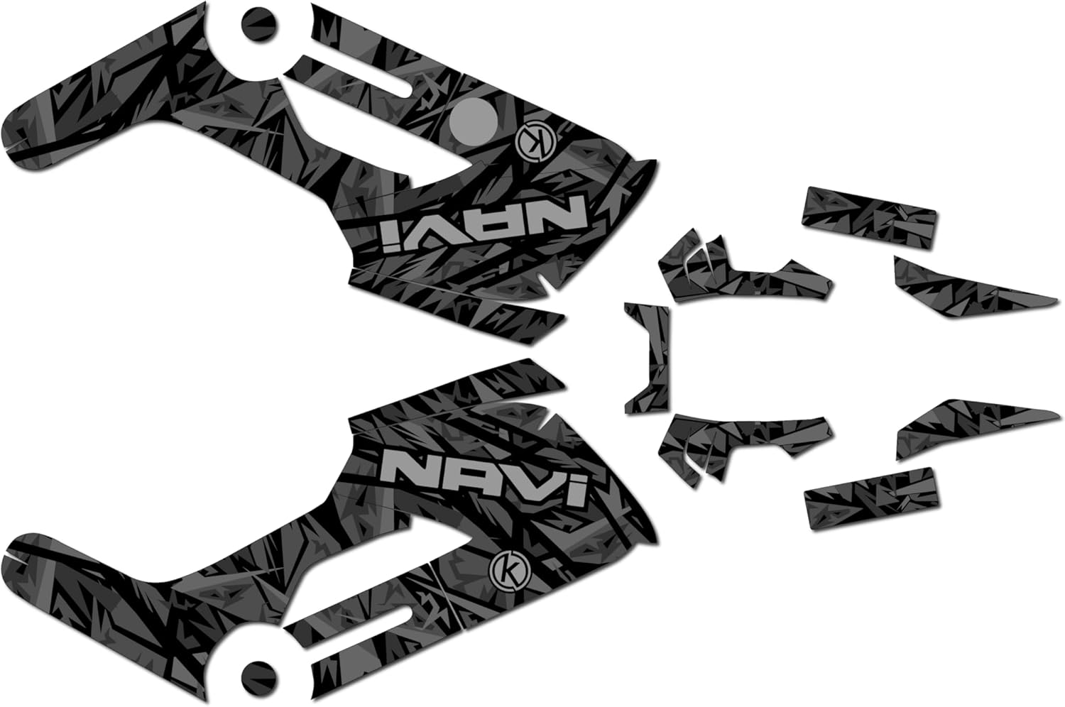 Fits NAVI (2016-2022) on OEM or OEM-replica plastics. Complete graphics kit, includes all pieces shown in the listing. Plastics NOT included.