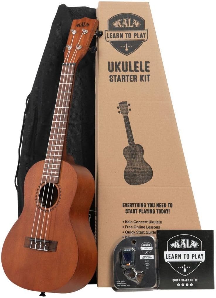 Official Kala Learn to Play Ukulele Concert Starter Kit, Satin Mahogany – Includes online lessons, tuner app, and booklet (KALA-LTP-C)