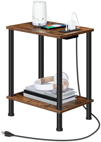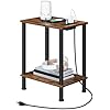 HOOBRO Side Table with Charging Station, End Table with USB Port and Outlet, Nightstand with 2-Layer Storage Shelves for Small Spaces, Living Room, Bedroom, Stable Frame, Rustic Brown BF09UBZ01