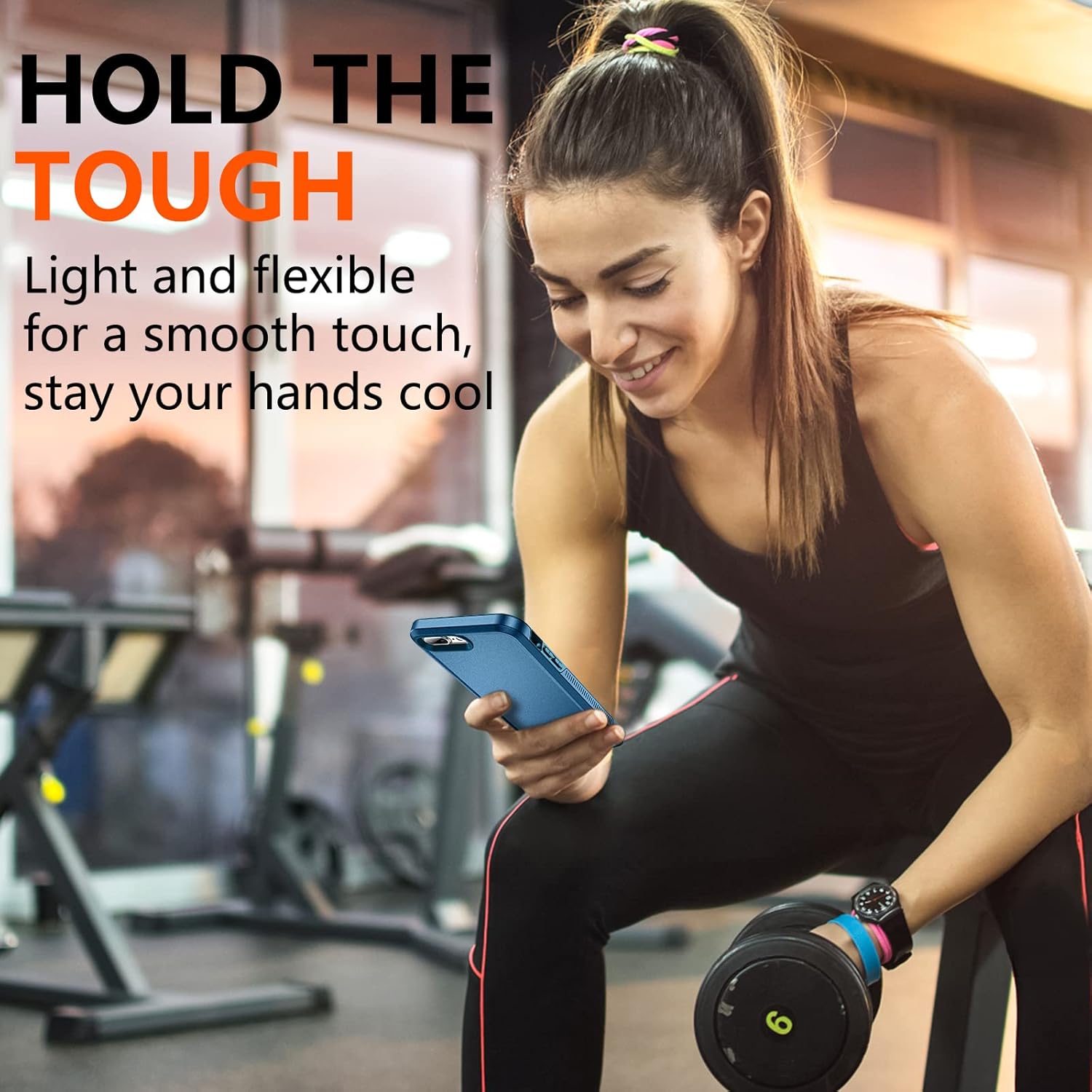 【Full Protection】Passed Military Drop Tested up to 10 FT. 2-Layer structure provides 360°full body rugged protection. The iPhone 7/8 Plus case is made with flexible rubber inner cover and hard polycarbonate back cover, provides good shockproof and anti-drop damage protection. Plus 2 tempered glass screen protectors with high touch sensitivity prevent scratches and crack.
