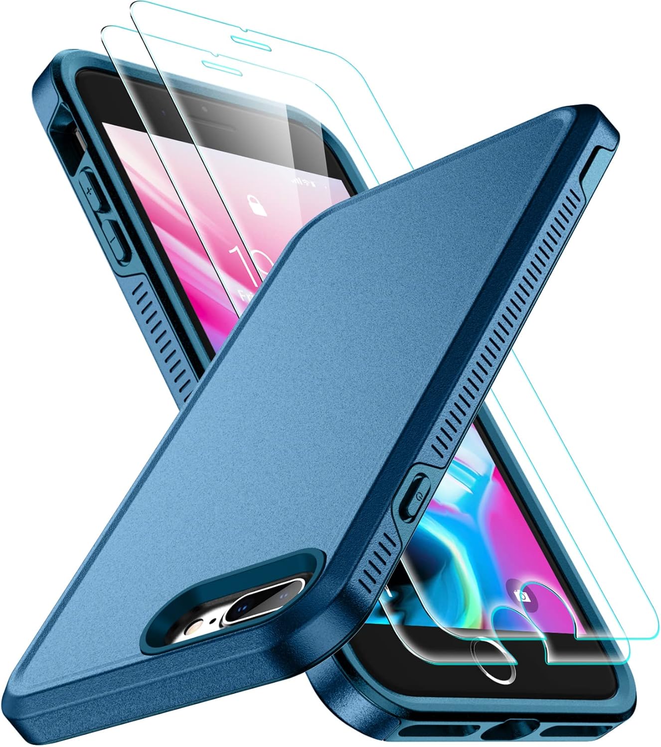 SPIDERCASE for iPhone 7/8 Plus Case, [10 FT Military Grade Drop Protection] [Non-Slip] [2 pcs Tempered Glass Screen Protector] Heavy Duty Full-Body Shockproof Case for iPhone 7/8 Plus 5.5”, Sea Blue