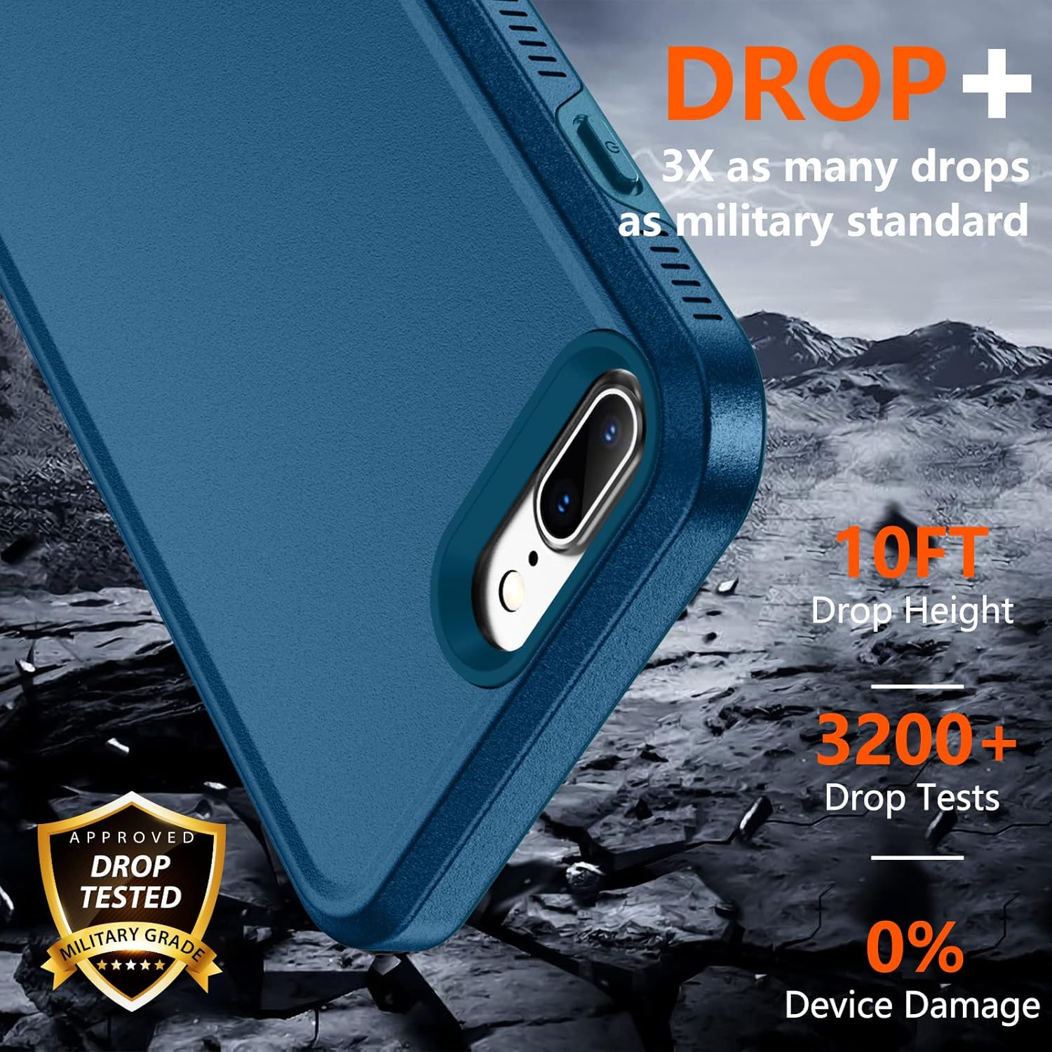 【Thorough Camera & Screen Protection】 Raised lips protecting iPhone 7/8 Plus screen and camera thoroughly. 1.5mm raised lips over screen and 1.5mm raised lips over camera relieves impact and protects the phone screen and camera against drop damage, cracks and scratches. Reinforced corner effectively absorb bumps from any angle drop.