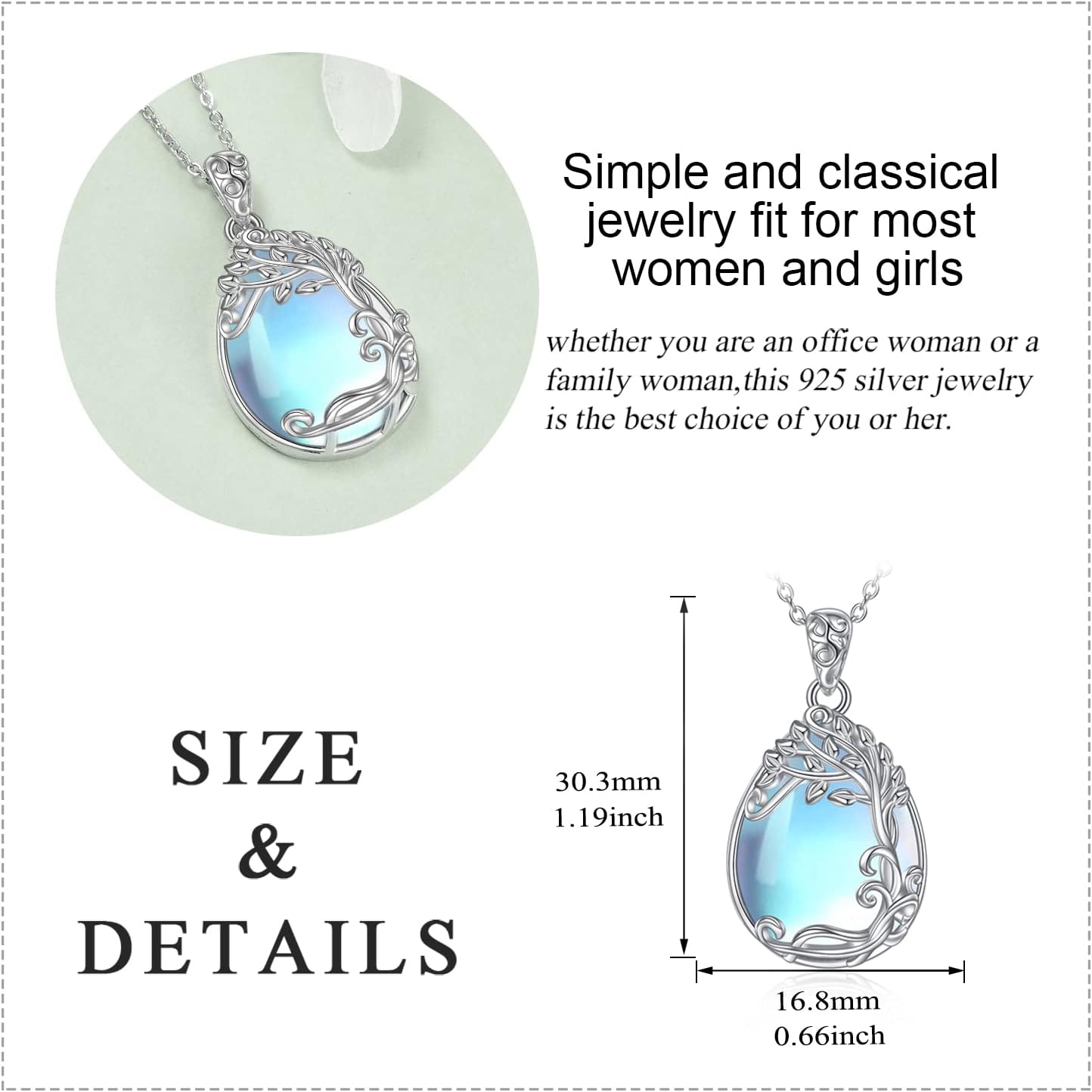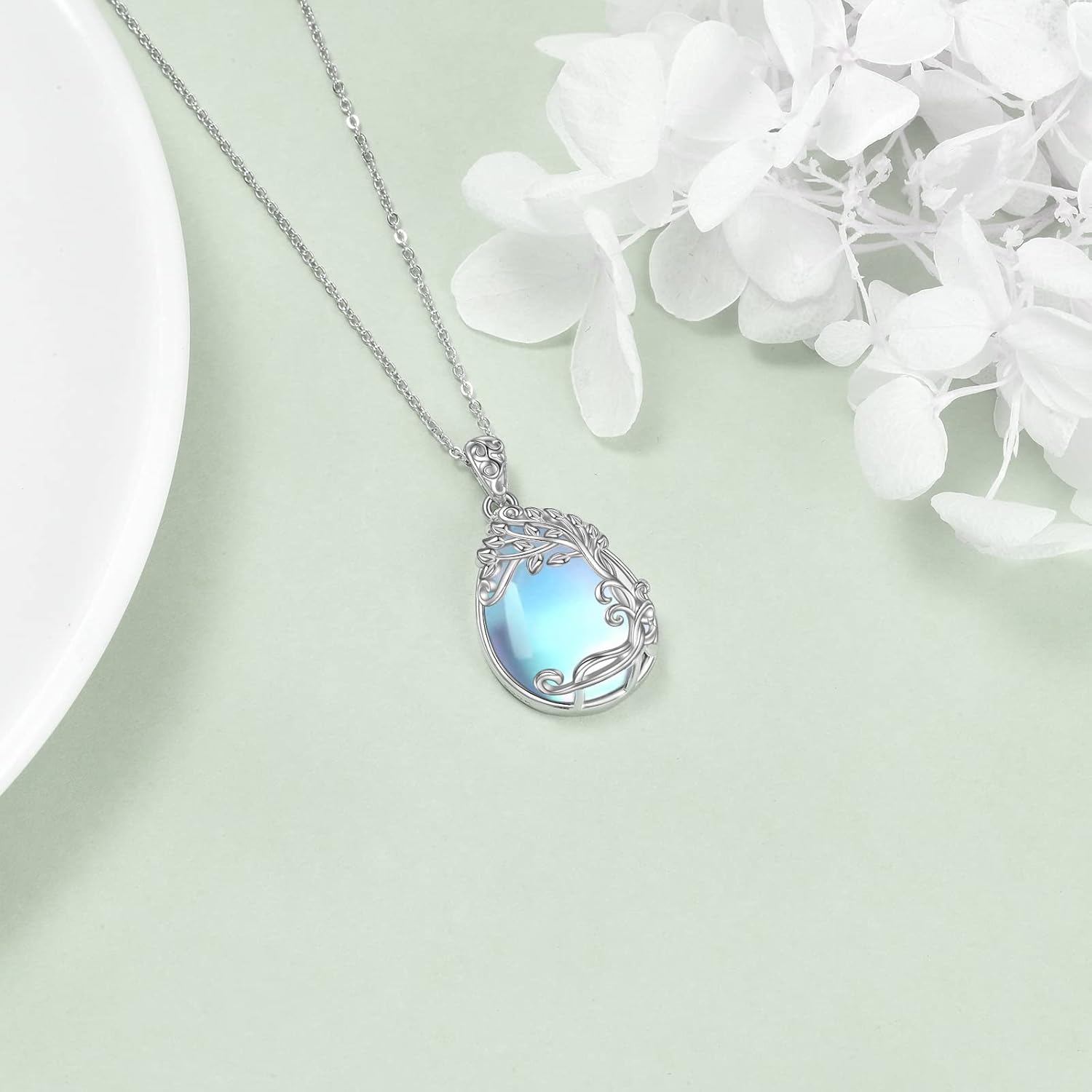 YAFEINI 925 Sterling Silver Moonstone Necklace Filigree Teardrop Pendant Necklace Jewelry for Women Girls