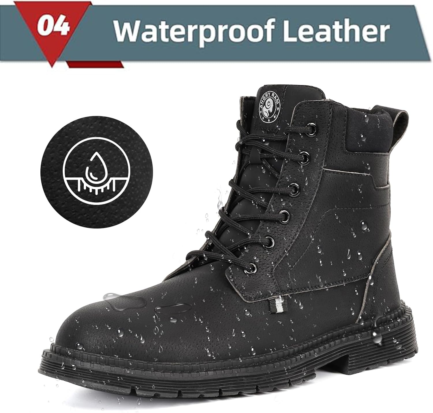 ANGRYRAM Steel Toe Boots for Men Comfortable Waterproof Construction Work Boots for Men Slip Resistant Lightweight Safety Shoes Botas de Trabajo Seguridad para Hombre