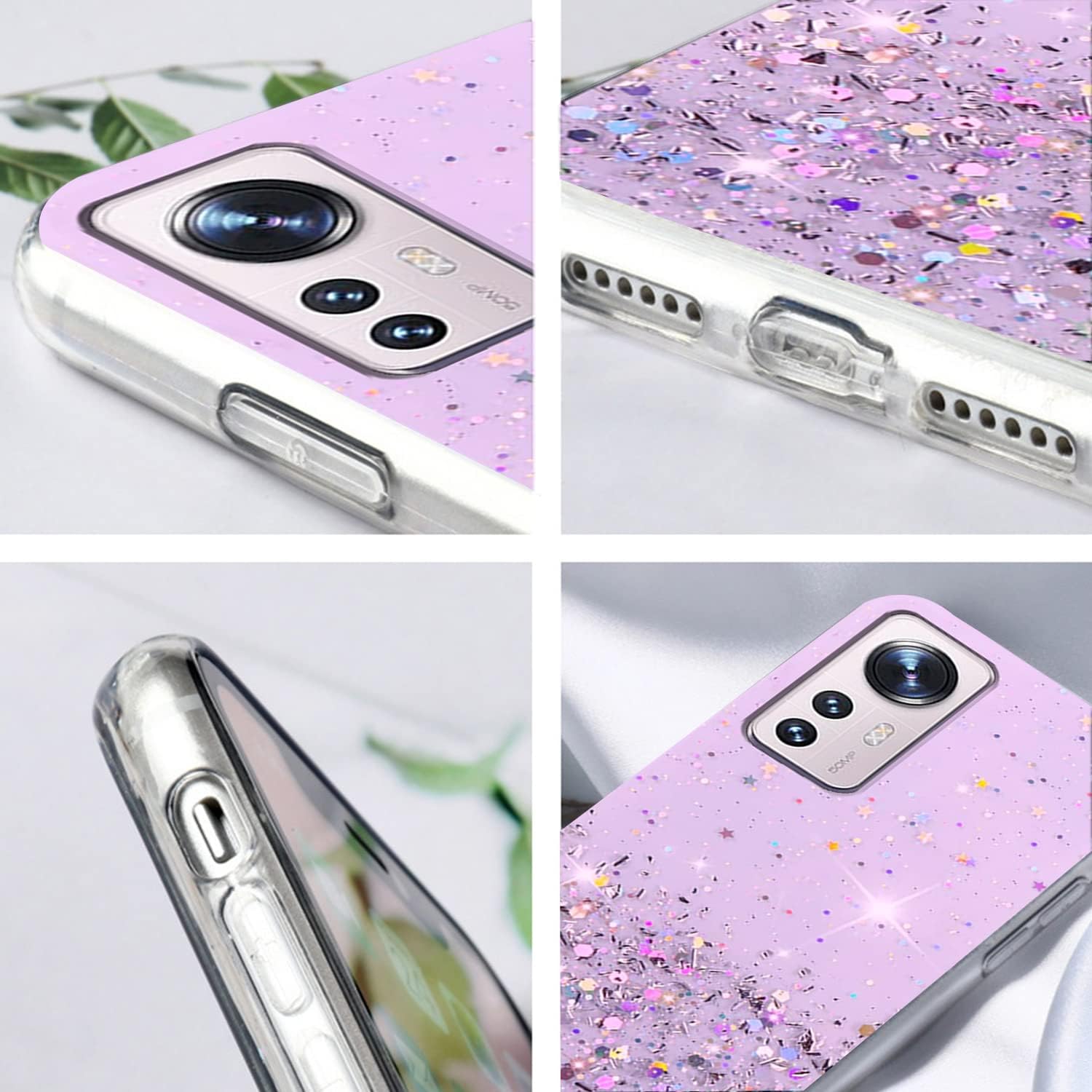 Phone Case for Xiaomi 12 Lite, Glitter Bling Design for Xiaomi 12 Lite Case Clear Silione Soft Aesthetic Slim Cover Pink Cute for Women & Girls (Purple)