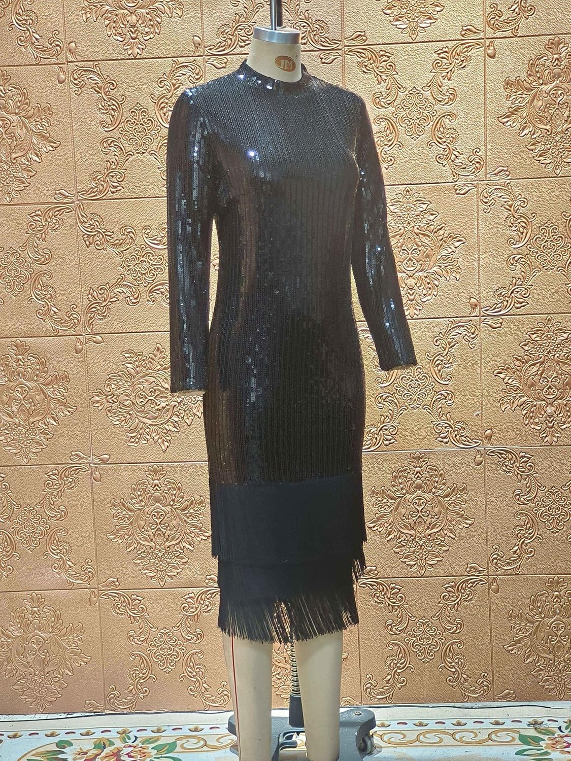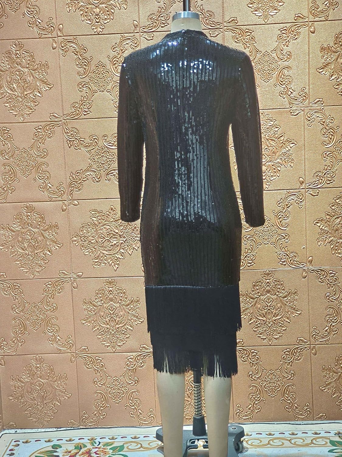 Cololura Sexy Elegant Women Sequin Short Sleeve Tassel Bodycon Midi Dress Party Evening Gown Formal Dress