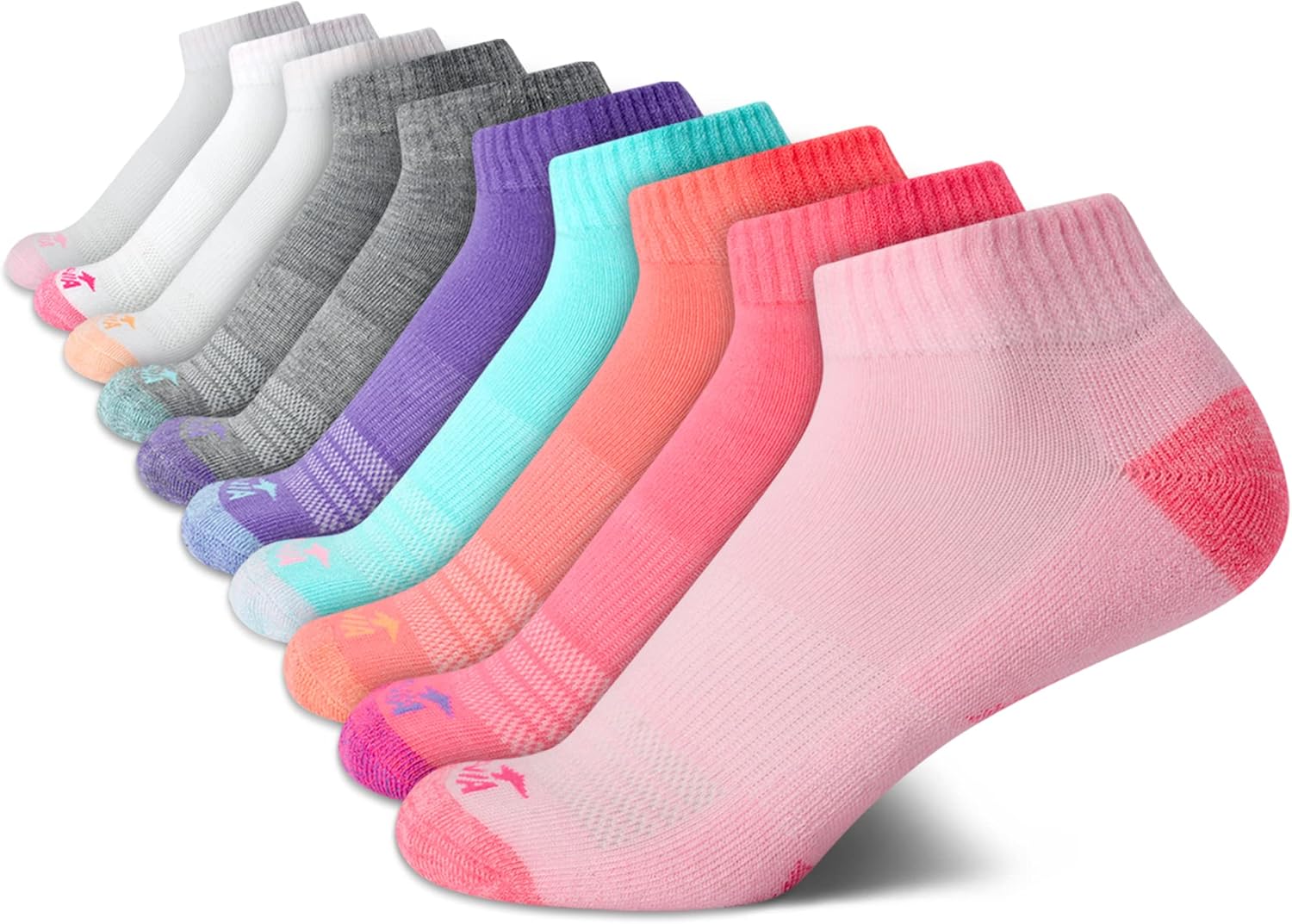 Avia Girls Athletic Performance Cushion Quarter Cut Ankle Socks (10 Pack)