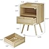 SUPERJARE Nightstands Set of 2, Night Stands with Charging Station & PE Rattan Decor Drawer, Bed Side Tables with Solid Wood Feet, End Table, for Bedroom, Living Room - Natural