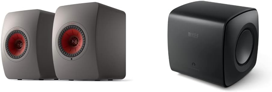 KEF LS50 Wireless II (Pair, Titanium Grey)LS50 Wireless II is more than a high-performance loudspeaker; it’s the perfect all-in-one speaker system, streaming from any source thanks to wireless compatibility with AirPlay 2, Chromecast and more, plus wired connections for your TV, games console and turntable. Great sound, no strings attached.KEF KC62 Subwoofer (Black)KC62 is an incredibly compact subwoofer that delivers the might and magic of deep, accurate bass for a thrillingly immersive music, movie and gaming experience. Created using innovative KEF engineering including the ground-breaking Uni-Core™ technology, the football-sized KC62 features two 6.5inch force cancelling drive units powered by 1,000W RMS of specially designed Class D amplification.