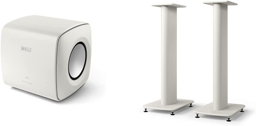 KEF KC62 Subwoofer (White)KC62 is an incredibly compact subwoofer that delivers the might and magic of deep, accurate bass for a thrillingly immersive music, movie and gaming experience. Created using innovative KEF engineering including the ground-breaking Uni-Core™ technology, the football-sized KC62 features two 6.5inch force cancelling drive units powered by 1,000W RMS of specially designed Class D amplification.KEF S2 Speaker Stand (Pair, Mineral White)The S2 Floor Stand provides the perfect platform for your speakers to perform. Designed to partner LS50 Meta, LS50 Wireless II, and other KEF standmount speakers, they boast a mounting system with integrated cable management that allows wires to be hidden, and spike discs to protect wooden floors.