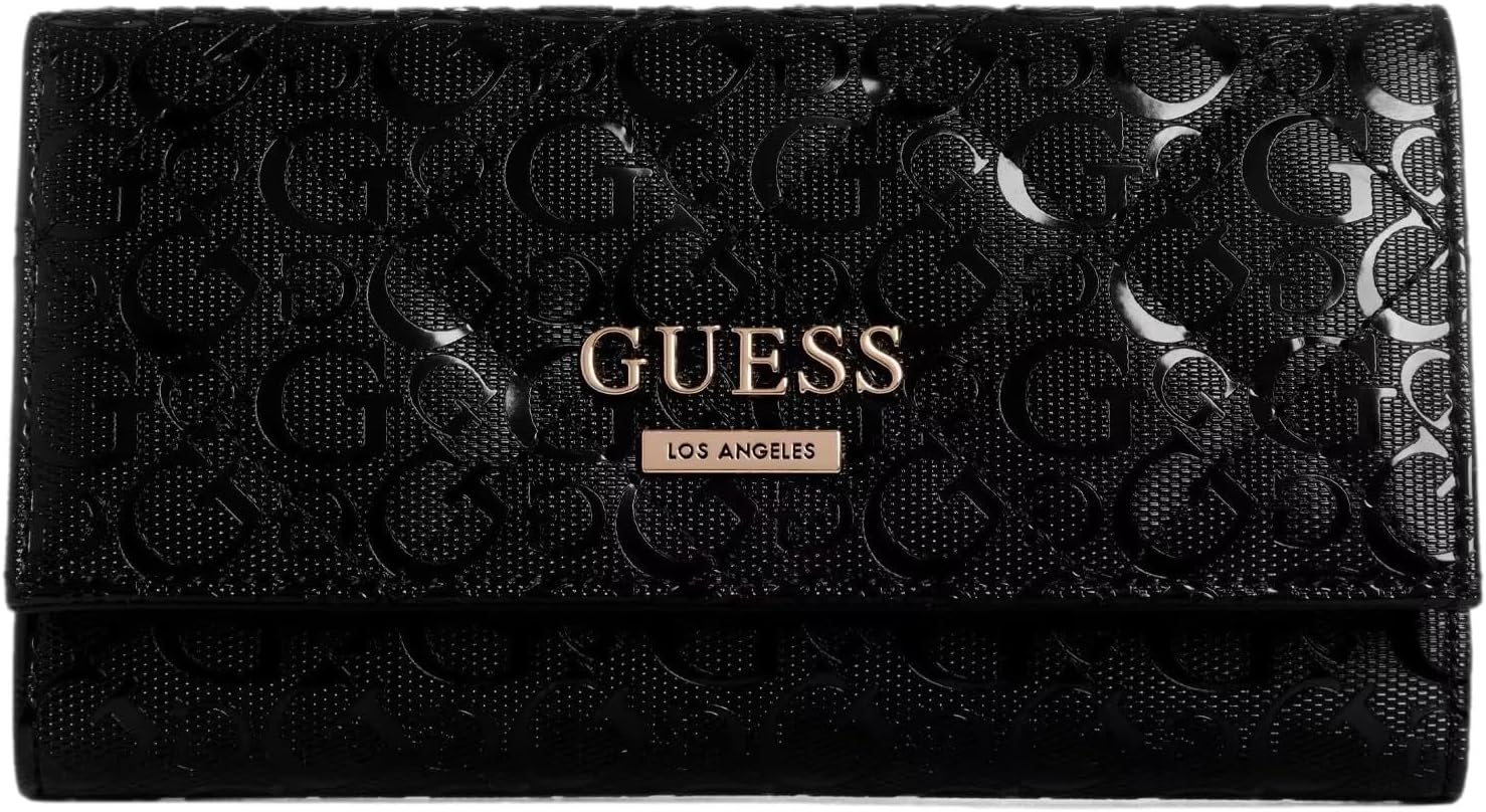 GUESS Women's Quilted Shiny Logo Slim Wallet Clutch Bag - Black