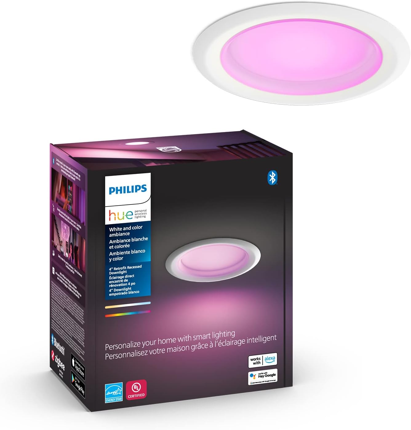 Philips Hue Smart Recessed Lighting 4 Inch - White and Color Ambiance Color-Changing Light - 850 Lumen - Control with Hue App - Compatible with Alexa, Google Assistant and Apple Homekit - 1 Pack