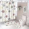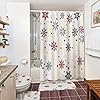Rtteri 4 Pcs Christmas Shower Curtain Set Snowflakes Shower Curtain with Non Slip Rug Toilet Lid Cover Bath Mat Christmas Bathroom Sets with 12 Pcs Hooks for Xmas Holiday Bathroom Decor, 72 x 72 Inch