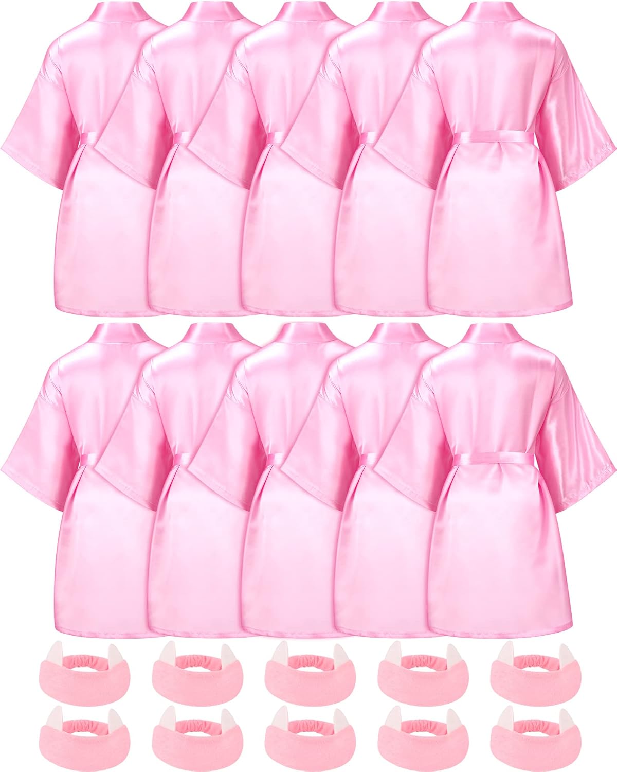 10 batas de baño para niñas, escuadrón, spa, fiestas, suministros para fiestas de flores, batas de baño para dormir, fiesta de cumpleaños, con diadema para niñas