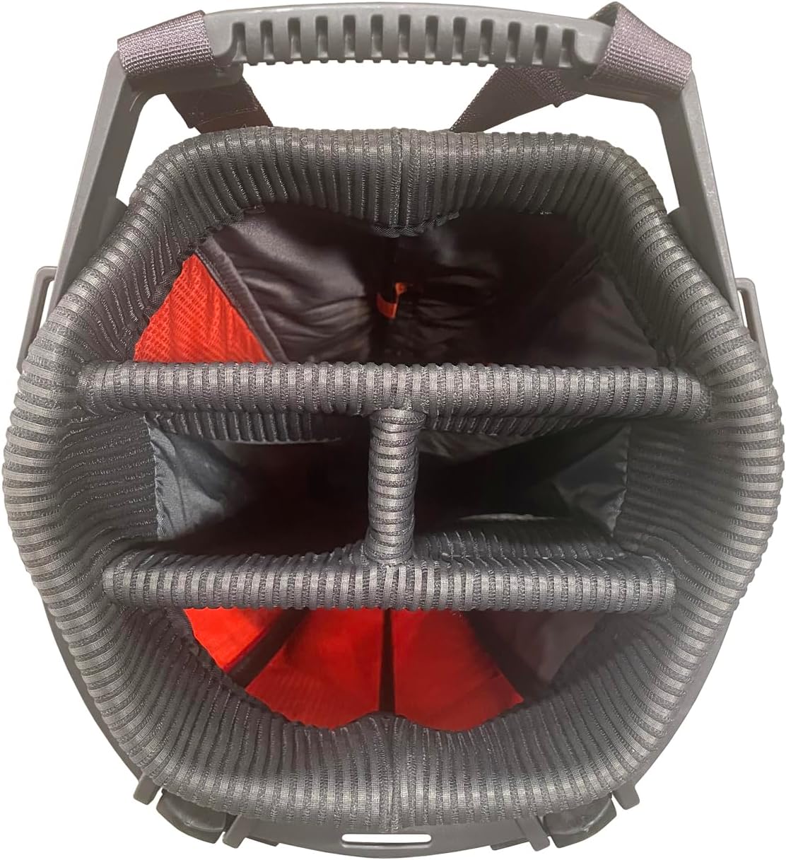Designed for the avid walking golfer, the 2.5+ redefines the features that can be offered in an ultralight golf bag. It has contoured, high-density foam shoulder straps for carry comfort, a roomy 9.0" top and six pockets including a beverage pouch. All of this and it stills weighs under three pounds. Features: Top: 9.0" Strap: X-Strap Dual Strap System Dividers: 4 Weight: 2.9 lbs Six pockets include a full-length apparel pocket; a velour-lined, valuables pocket; a ball pocket with two-way zippers; a beverage pouch; and multiple accessory pockets Lightweight, high-strength-to-weight plastic top with a comfort-grip handle X-Strap System is easy to get on and off and works well as a single strap for short carries Ultra-lightweight, highly durable carbon fiber legs Matching rainhood included
