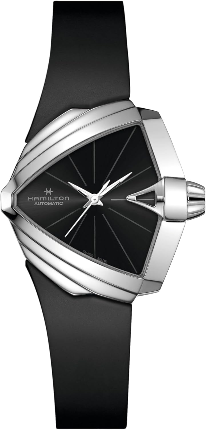 Hamilton Watch Ventura S Auto | Swiss Made | 34.5mm x 38mm Stainless Steel Case | Black Dial Analog Watch | Black Rubber Strap (Model: H24105330)