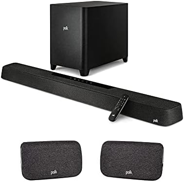 Polk MagniFi Max AX 5.1.2 Channel Sound Bar With 10" Wireless Subwoofer (2022 Model) + SR2 Wireless Surround Sound Speakers for Select React and MagniFi Sound Bars