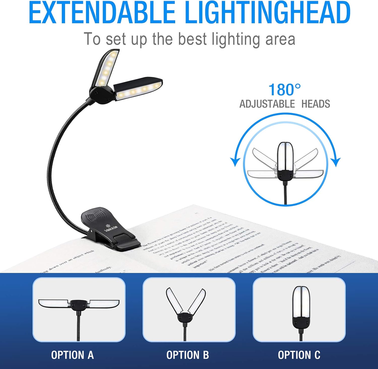 Vekkia 14 LED Book Light con Cargador y Estuche de Viaje, Cubre Ambas Páginas, Luz de Lectura Cálida/Blanca con Abrazadera, Lámpara de Lectura Ligera para Cuidado de los Ojos, Ideal para Lectores