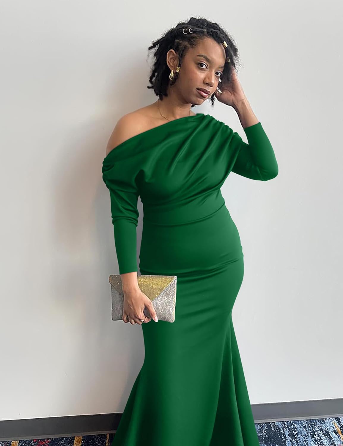YMDUCH Women's Sexy Elegant Long Sleeve Off Shoulder Bodycon Long Evening Formal Dress